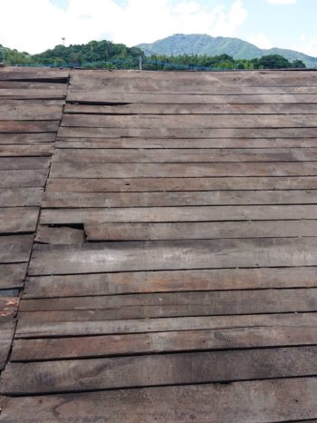 | ご提案内容 | ボロボロだった防水紙の張替と葺き替えしていなかった部分の葺き替えを行い、雨漏りしない屋根に修理します。 |