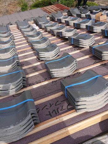防水紙を張って瓦を上げました。