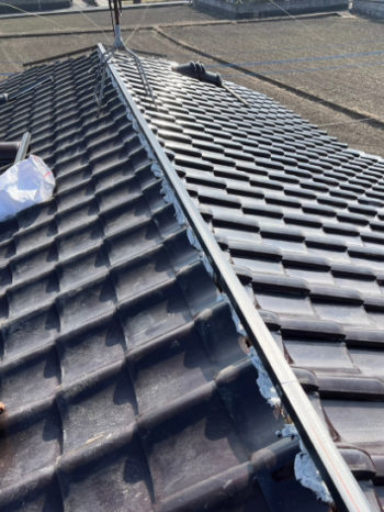 防水紙に悪い部分があったので一部張替えて、棟金具を取付けます。