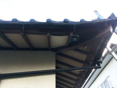 棟の下も、雨漏りにより軒天が腐っていることが確認できます。