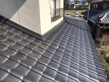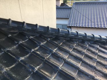 試しに瓦をはぎ取ってみると、雨によりできた染みがありました。
