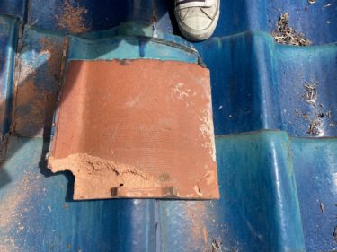 大きな原因が、こちらの写真の瓦です。瓦が溶けるように破損しています。