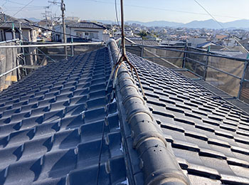 屋根瓦が重いものとなっているため、耐震性に心配があるというご相談でした。 屋根瓦の葺き替え工事を行い、現在の陶器瓦からアスファルトシングルと呼ばれる、割れにくく錆びない屋根材へのリフォームをご提案しました。 |