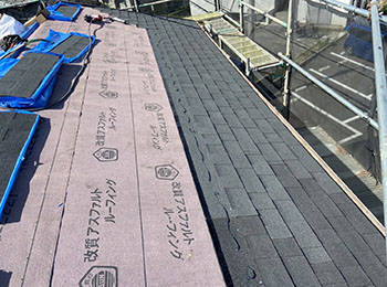 アスファルトシングルの屋根は野地板を屋根より外側に出さないといけないため、既存屋根をかさ上げして新しい野地板を張ります。