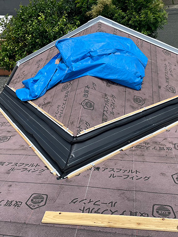 3防水紙を張ります。これで突然の雨にも安心です