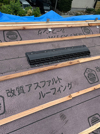 6桟木を取り付けて瓦を屋根に上げました