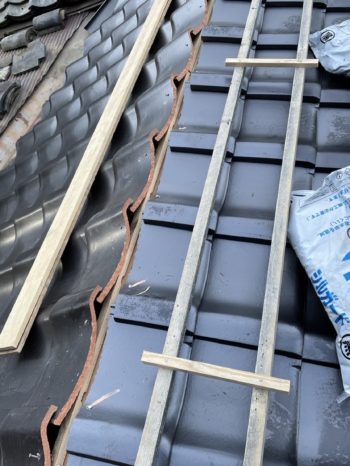 1葺き替えをする部分の瓦を剥ぎ取ります。