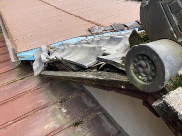 1雨漏りの修繕希望でご連絡をいただきました。下地の木が腐って瓦が落ちています。
