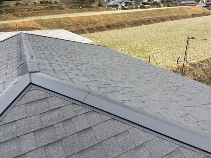 屋根材、棟板金が新しくなり葺き替え工事をしてような印象です。